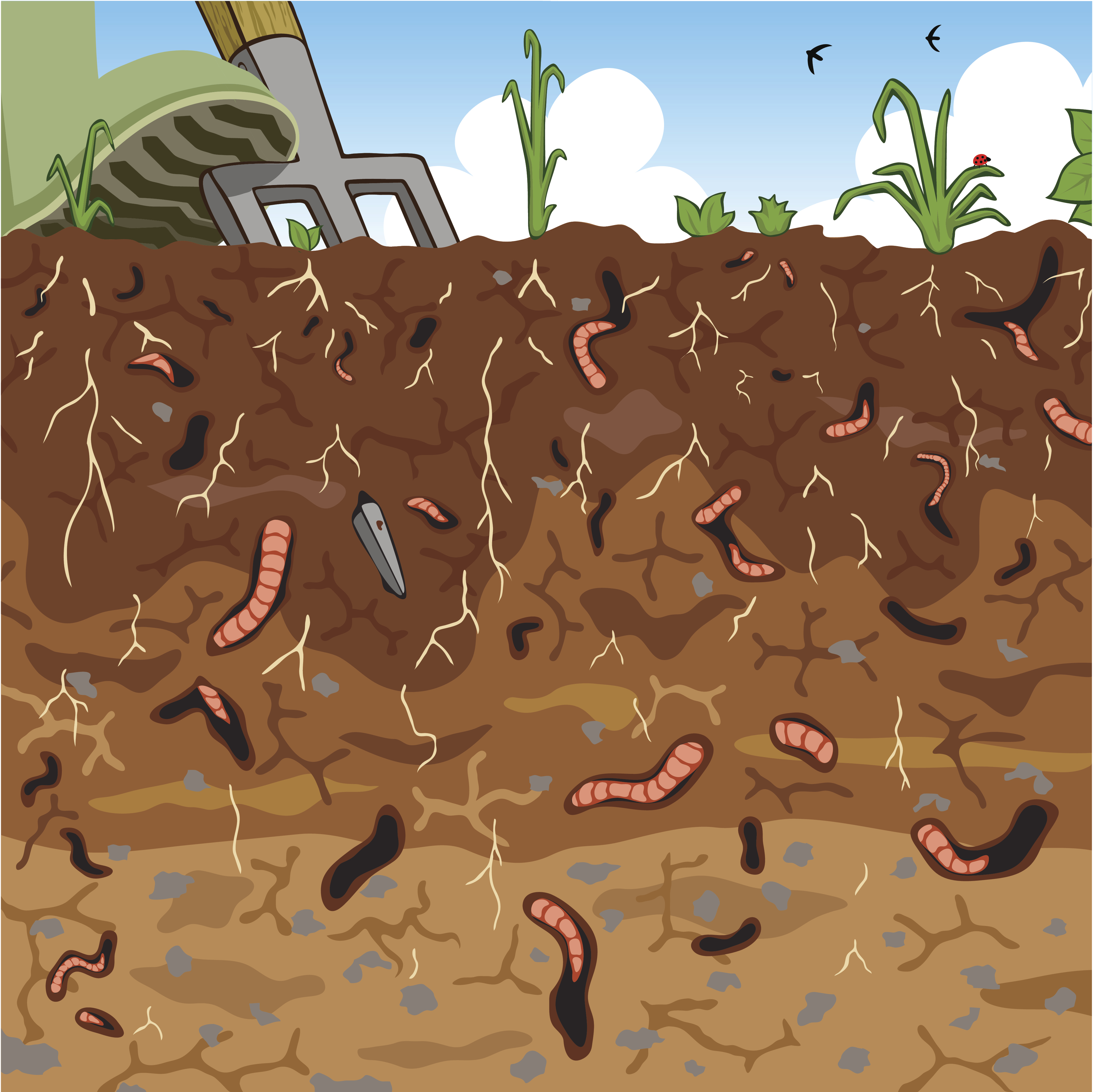 The dirt contains decomposing leaves and roots, and the worm's body extracts these nutrients from the soil.